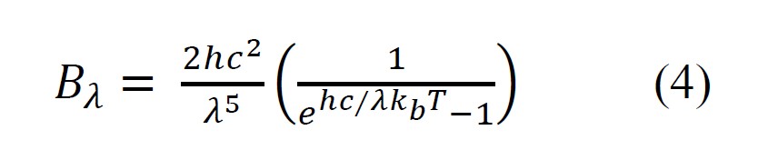 where Bλ is the radiance, λ is the wavelength, T is the absolute temperature and C1 and C2 are empirically determined constants