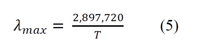 where λmax is the wavelength for peak radiance [nm], and T is the absolute temperature [K]