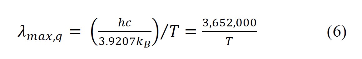 where λmax,q is the wavelength for peak photon flux [nm], and T is the absolute temperature [K]